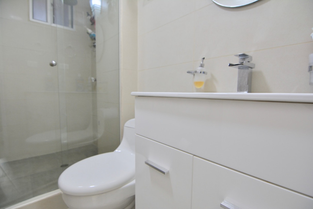 NO COMISIONISTAS - Acogedor apartamento, en buen estado, con remodelaciones, buena distribución de espacios y ubicación. Cuenta con tres alcobas, sala, comedor, cocina, zona de ropas, dos baños y garaje. El edificio ofrece ascensor. El sector es residencial, cercano a zonas comerciales, corporativas y estudiantiles, supermercados, restaurantes y vías principales.
