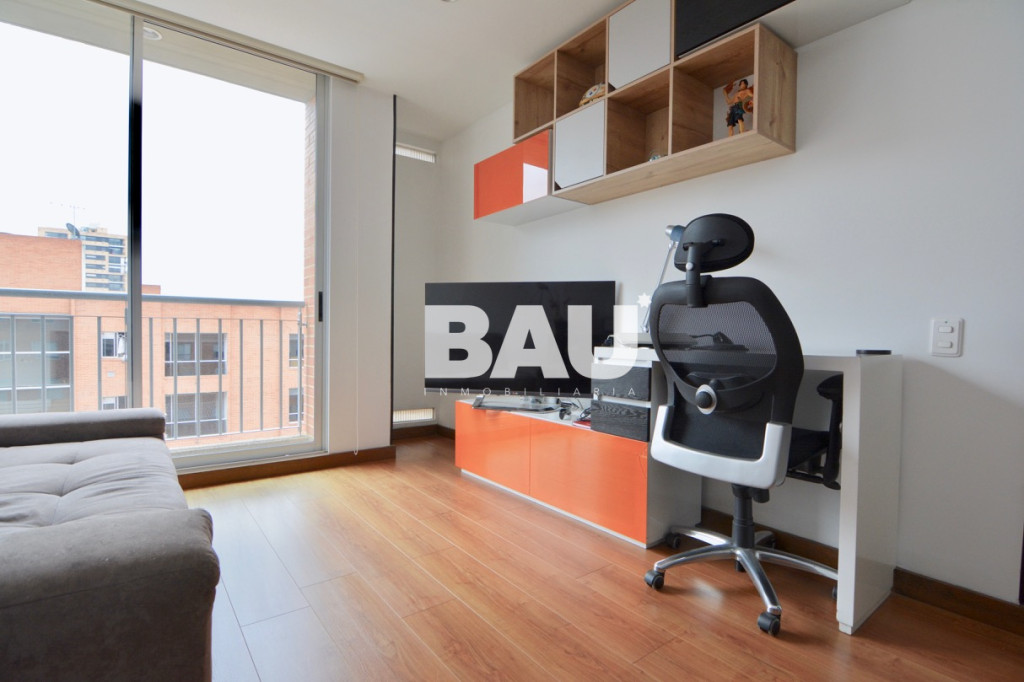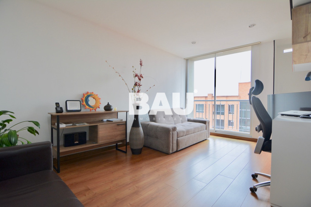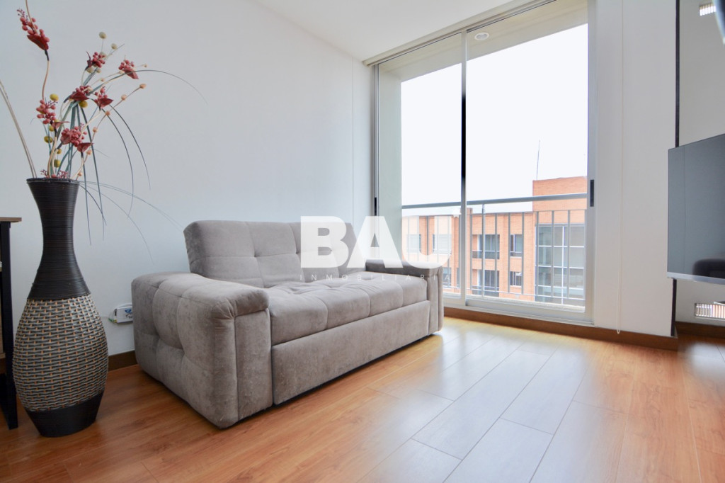NO COMISIONISTAS - Iluminado, cálido y acogedor apartamento amoblado, en perfecto estado, con buena distribución de espacios y ubicación. Cuenta con dos alcobas, sala -comedor, balcón, estudio, cocina abierta y garaje. El edificio ofrece portería con recepción, salón social, gimnasio, parque infantil, ascensores y parqueadero para visitantes. El sector es residencial, cercano a zonas comerciales - corporativas - estudiantiles, parques, supermercados, droguerías, restaurantes, bancos y vías principales.