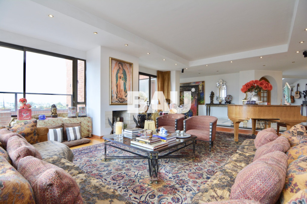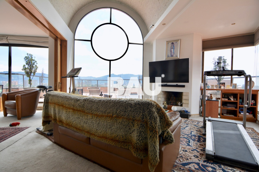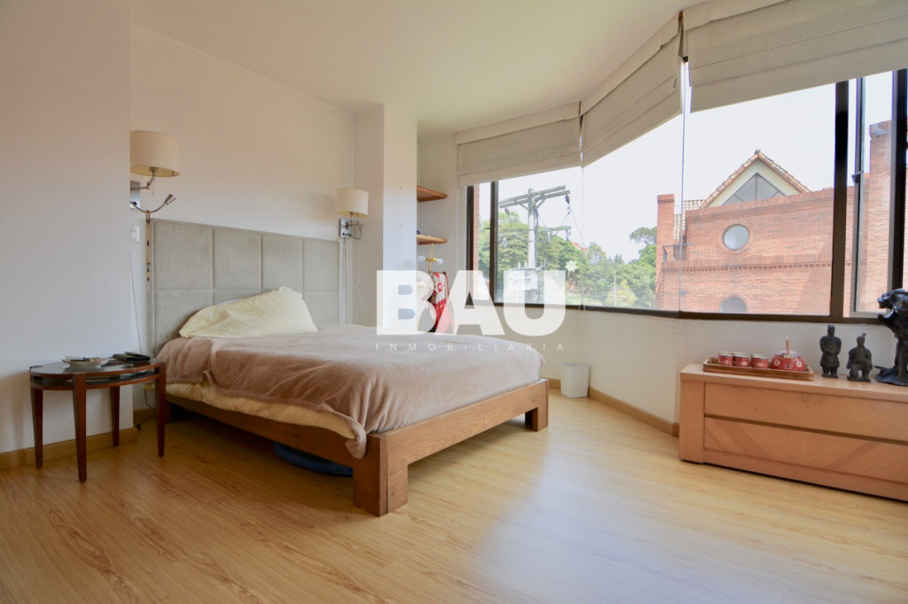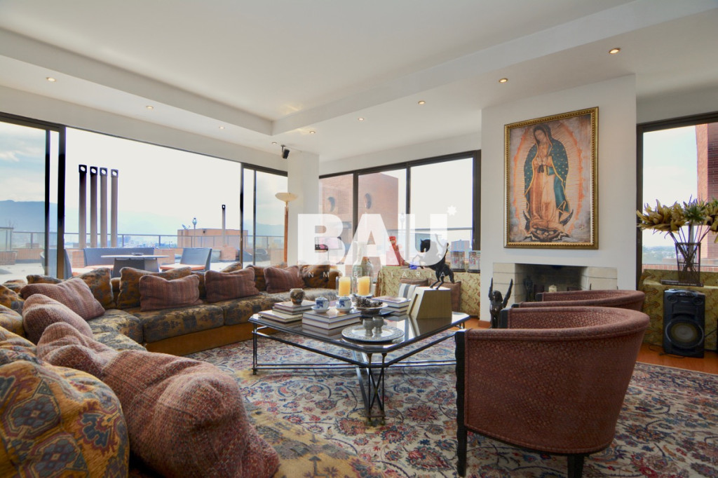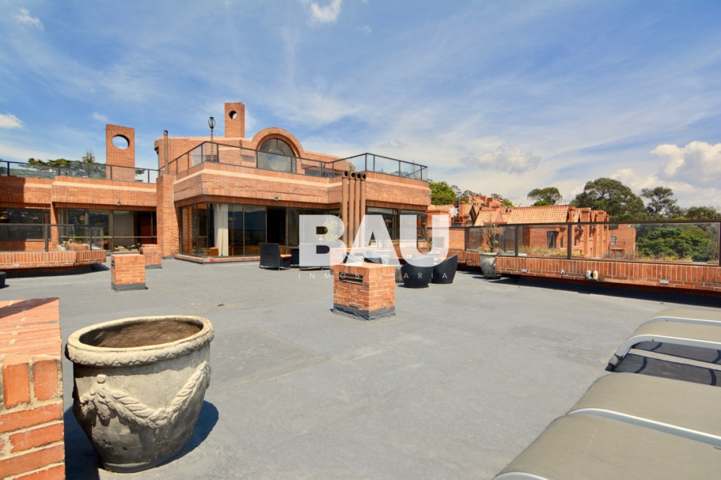 NO COMISIONISTAS - Amplio, imponente, único, cálido y acogedor penthouse dúplex con la mejor vista panorámica del sector, magnifica distribución de espacios, acabados y ubicación. Cuenta con cuatro alcobas, cada una con baño privado, (La alcoba principal tiene sala, chimenea y jacuzzi en el baño), sala con chimenea, comedor independiente, tres terrazas espaciosas rodeando el apartamento, dos estudios, cocina, zona de ropas, cuarto de servicio con baño, baño social, dos depósitos y garaje hasta para seis carros. El edificio ofrece portería con recepción, salón social, ascensores panorámicos y parqueadero para visitantes. El sector es residencial y reservado, rodeado zonas verdes y jardines, cercano a zonas comerciales, corporativas, supermercados y vías principales.