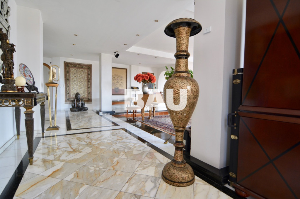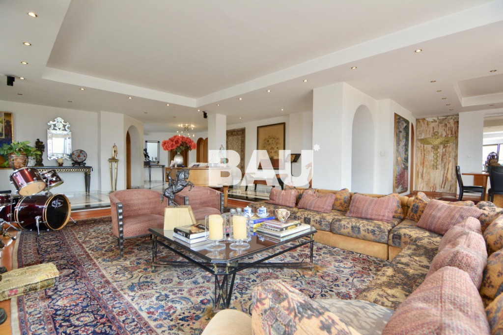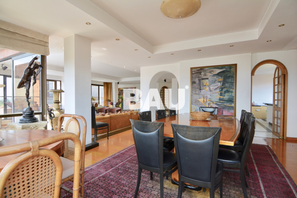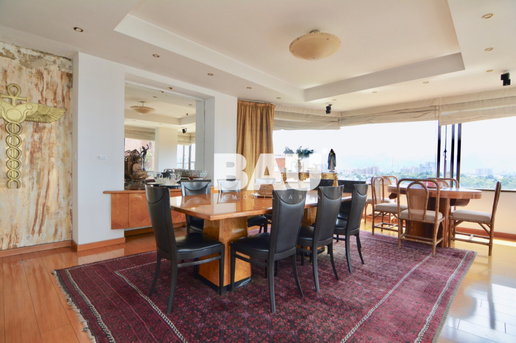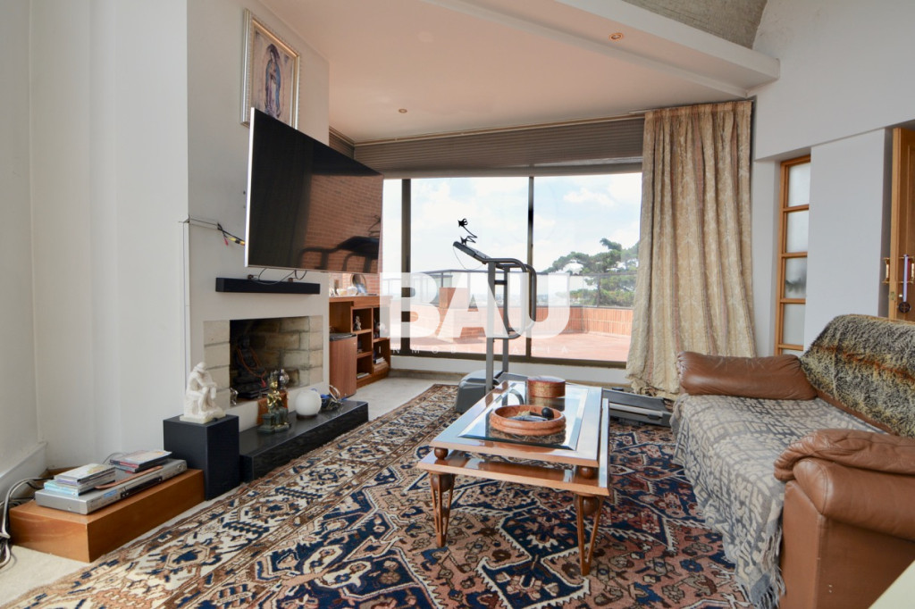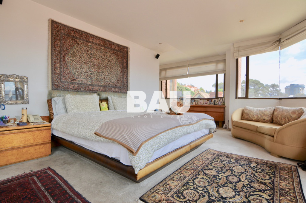 NO COMISIONISTAS - Amplio, imponente, único, cálido y acogedor penthouse dúplex con la mejor vista panorámica del sector, magnifica distribución de espacios, acabados y ubicación. Cuenta con cuatro alcobas, cada una con baño privado, (La alcoba principal tiene sala, chimenea y jacuzzi en el baño), sala con chimenea, comedor independiente, tres terrazas espaciosas rodeando el apartamento, dos estudios, cocina, zona de ropas, cuarto de servicio con baño, baño social, dos depósitos y garaje hasta para seis carros. El edificio ofrece portería con recepción, salón social, ascensores panorámicos y parqueadero para visitantes. El sector es residencial y reservado, rodeado zonas verdes y jardines, cercano a zonas comerciales, corporativas, supermercados y vías principales.